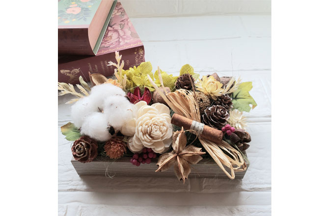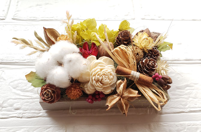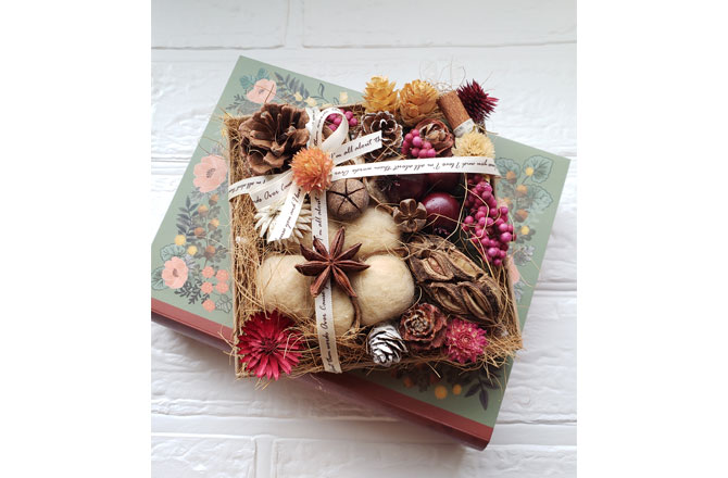 秋を詰め込む木の実のボックスアレンジ【お子様連れ限定】