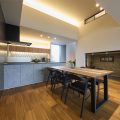 間接照明と木のぬくもりを感じられるダイニング