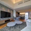 ハーフ吹き抜けで解放感がありテレビ裏はエコカラットでデザイン性と機能性を兼ね備えています 。