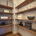 キッチン横のパントリーは可動棚で自由に高さを変えることができたっぷり収納ができます。