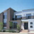 清潔感あふれるホワイトとシックなブラウンの外壁を組み合わせモダンな雰囲気を演出