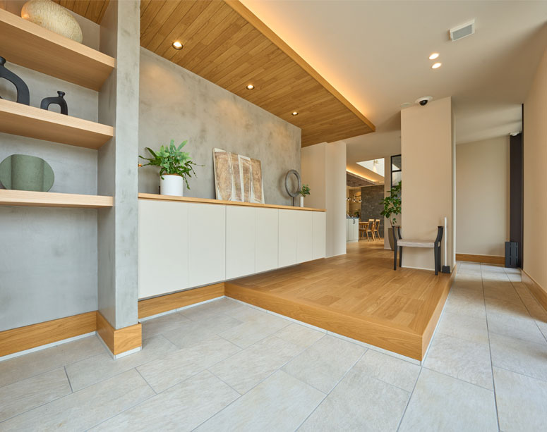 超空間を体感できる陽光あふれる時間を忘れてくつろげる心地よさを提供いたします。併せて、家事を効率よくするための動線など、細かな配慮がされた住まいです。家族が自然と集まりたくなるような心地よい空間で、贅沢なひとときをお楽しみください。