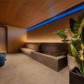 LDKと繋がる半外テラス、造作ソファでウォーターガーデンの水音を愉しむ贅沢なひと時