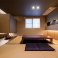 質感豊かな畳と光の調和、間接照明が優しく灯り心整う穏やかなくつろぎを堪能