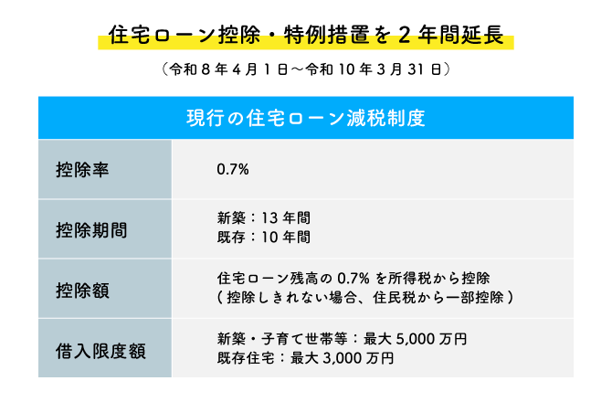 2026年度以降の住宅関連税制=住宅ローン控除の仕組みは、2025年末までに適用された制度が、2028年3月末以降まで延長される形での検討が進行中です。