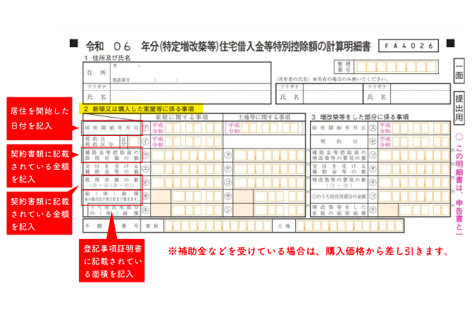 まず、下記のうち「2 新築又は購入した家屋等に係る事項」の部分に、以下の項目を正しく記入しましょう。