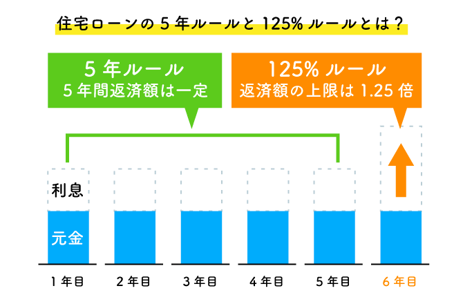 125%ルールがあることで、金利が急激に上昇したとしても無理のない返済ができます。なお、5年ルール同様に125%ルールを適用していない金融機関もあるため、事前の確認が必要です。