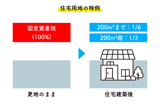 ・宅地の面積が200㎡までは、固定資産税評価額の1/6が課税標準額