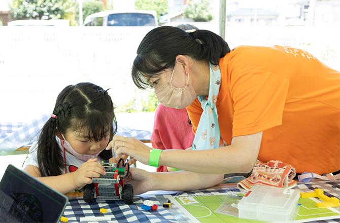 活動の一環として、同大学内で子どもと大学生が一緒になってロボットやゲームを作りながら学ぶ場を提供している。