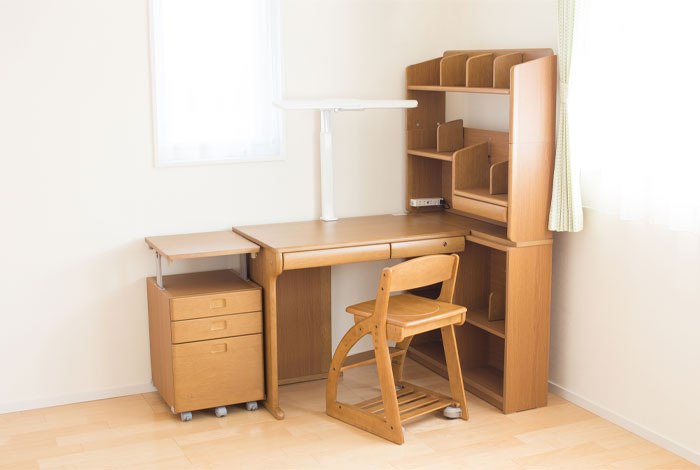 専用の学習机や本棚が、宿題の意欲を高めてくれそうです。