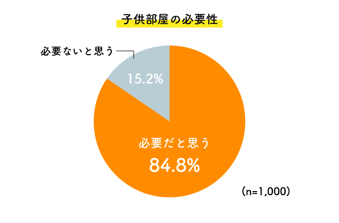 以下は、子供部屋の必要性について調査したデータです。85%近くが「必要」と答えています。