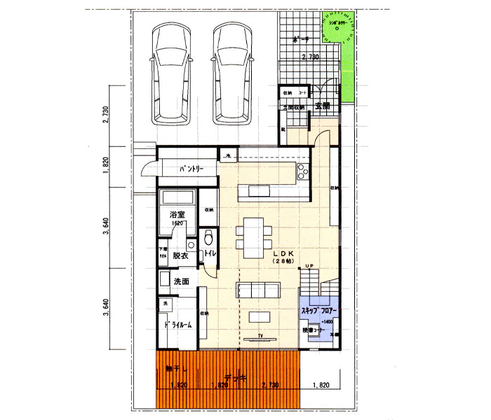 下図の間取りのように、リビングに通じるスキップフロア=中2階に勉強等のできる個人スペースを設けて子供の物を置き、収納管理まですれば、ある意味個室よりも理想的な場所になりそうです。
