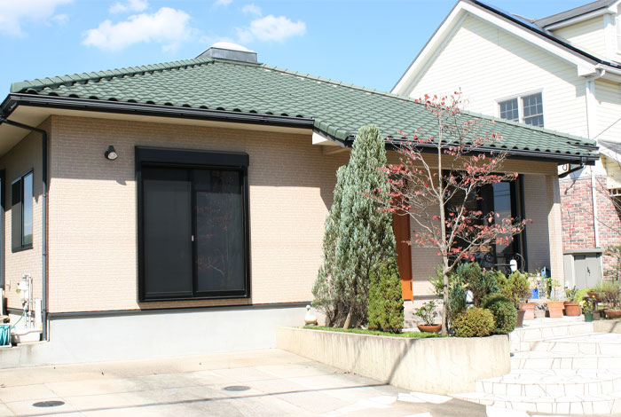 中高年のご夫婦が、老後を見越してつくった終の棲家です。通風や採光が良いほか、寝室そばのトイレ、コンパクトな水回りの動線など、一人暮らしにも対応しやすい間取りとなっています。