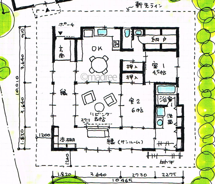 オーダーの仕様を望まず、既成品をうまく組み合わせ、建物のつくりもシンプルな外形で、部屋数も減らした間取りが予算を抑えるには有利です。