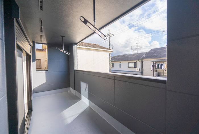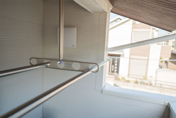 屋根・壁を備えるインナーバルコニーはベランダや通常のバルコニーに比べて、洗濯物干しに向いています。