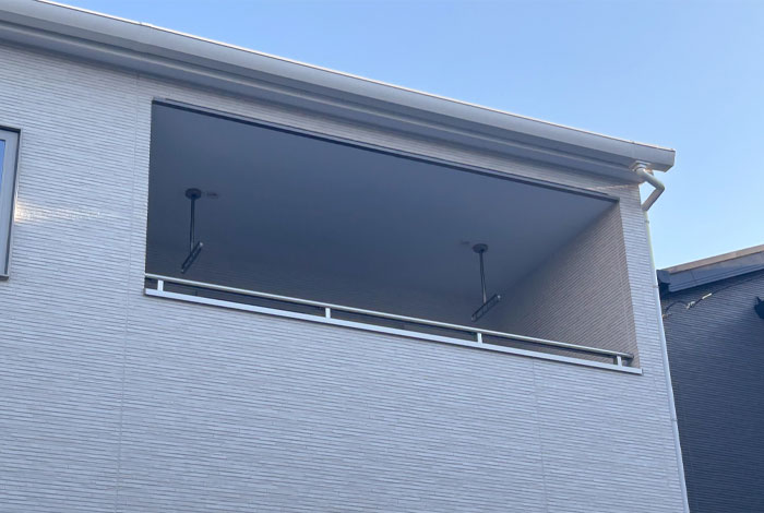 雨の日などでも、天候に左右されずに洗濯物を外気に当て、風通しできる点はありがたいです。2mほどの奥行きがあれば、強い雨でない限りは、降り込みを避けることができます。
