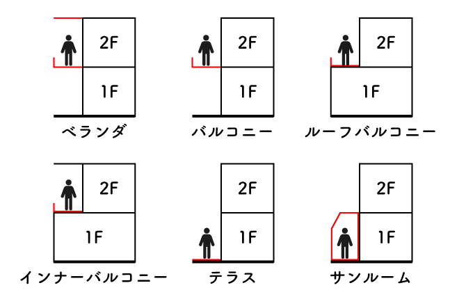インナーバルコニーとバルコニー、ベランダ、サンルームの違い