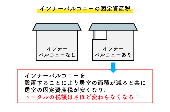 ただし、これらの増税に対する考え方は、「インナーバルコニー部分に何もなかった、あるいは通常のバルコニーだった」場合と比較してのものです。