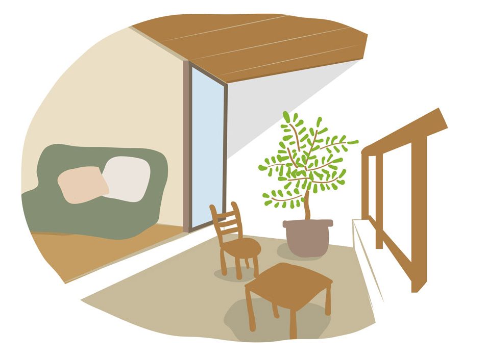インナーバルコニーの場合、椅子やテーブルを置いて、何人かでくつろぐアウトドア空間に利用することを想定すると、奥行きは2m程度が必要となります。